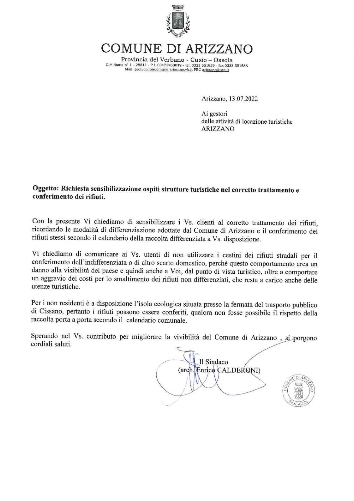 Si chiede di sensibilizzare gli ospiti delle strutture turistiche al corretto trattamento dei rifiuti e al loro conferimento secondo il calendario della raccolta differenziata, evitando di utilizzare i cestini dei rifiuti stradali.