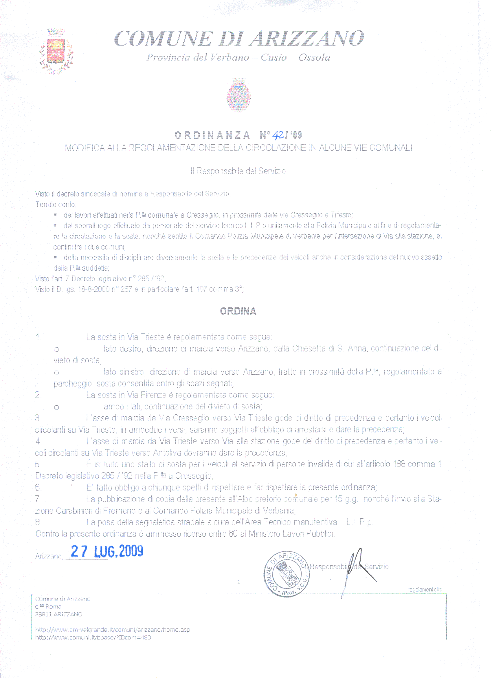 Ordinanza n° 42 / '09
