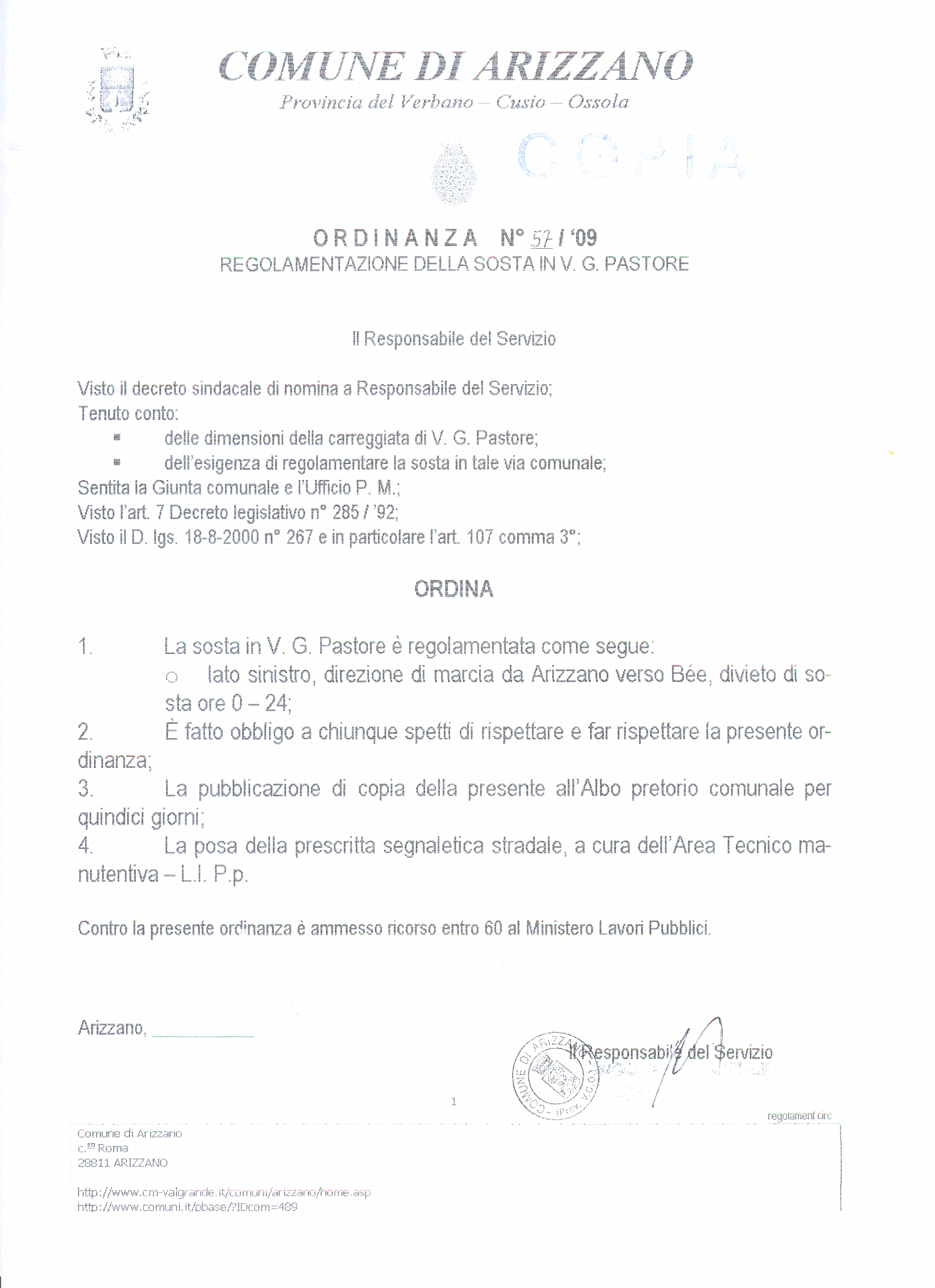 Documento albo pretorio > Atto amministrativo > Ordinanza > Ordinanza del Sindaco